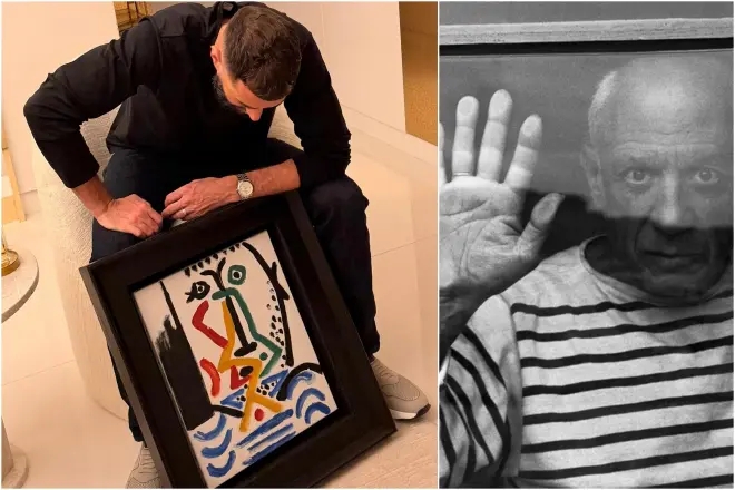 12月22日讯 昨日本泽马在社媒晒出了自己与一副画作的合影,西媒《马卡报》报道指出,这幅画是毕加索在1964年所作。