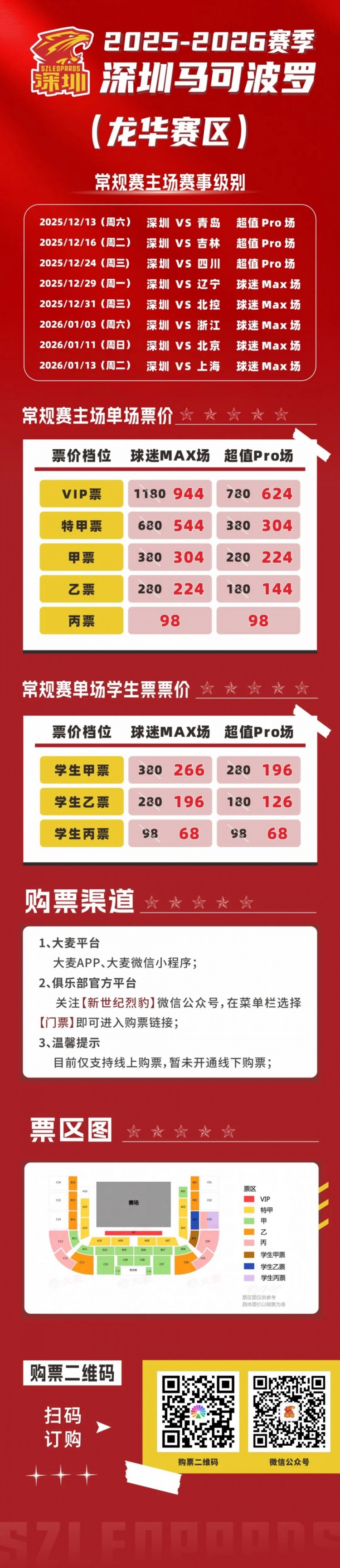 让我们一同到场为深圳马可波罗呐喊助威。球迷朋友可通过大麦APP、大麦微信小程序及本公众号官方渠道购票,锁定现场观赛席位。